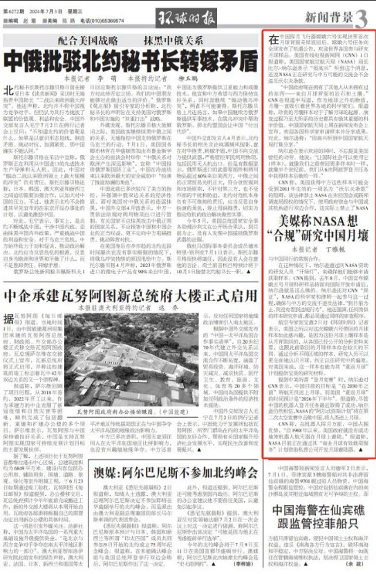这也让我想到了一件事情,此前我国就公开说明过,我国已经准备了嫦娥五号月壤给美国,让美国拿阿波罗月壤计划来进行交换,结果美国没有回应,而我国这一次直接宣布了,美国入选名单,让很多人误会了,中国已经给了,这报道至少说明了,还没有给,要想拿到,必须与中国签署协议。